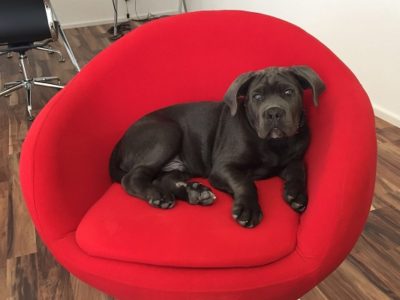 Um gleich von Anfang an alles richtig zu machen, suchte ich in Braunschweig und Umgebung nach einer geeigneten Hundeschule mit Welpen-Sozialisationtraining und erlebte mehrere Pleiten (von der „Leckerli-Fraktion“ über „der gehört ans Stachelhalsband“ bis hin zu „Cane Corso? Den nächsten freien Welpenkurs haben wir in 2 Jahren“).