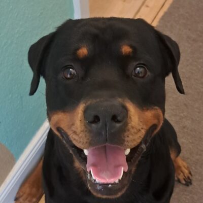 Ich bin mit meinem Pubertier (Rottweiler, Rüde, 17 Monate alt) bei Ela im Training. Unsere Probleme waren, dass er schlecht zur Ruhe kam und teilweise bei starker Aufregung anfing seine Rute zu jagen und an ihr zu knabbern.